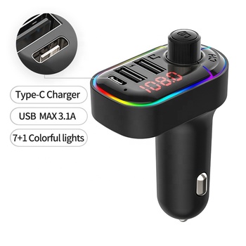 Bluetooth 5.0 Fm Transmitter Hands-Free Car Mp3 Máy Nghe Nhạc 7 + 1 Đầy Màu Sắc Đèn Usb PD Nhanh Chóng car Charger Hỗ Trợ Sirl